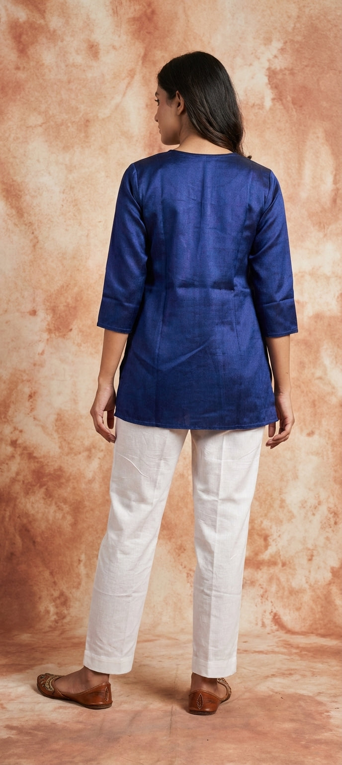 Premium Plain Gaji Silk Short Kurti - ROYAL BLUE